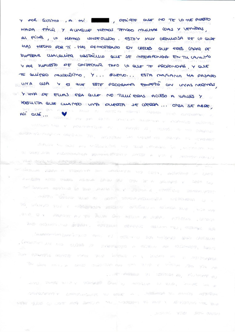 Agradecerles a las personas que me han acompañado y ayudado todo este tiempo, mi padre, mi madre, mis hermanas, mis amigos, que soy la persona más feliz del mundo por tenerlos junto a mí, a los voluntarios, a mis educadores y a mis terapeutas. Sin vosotros no tendría nada en la maleta.